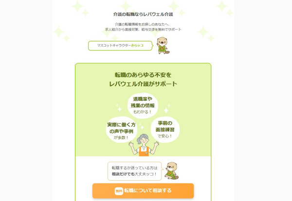 介護職に特化した転職エージェント「レバウェル介護」は、経験豊富なコンサルタントのサポートが充実していると評判です。面接の予定調整や、自分では難しい給料などの条件交渉もコンサルタントが代行してくれます。またエリアごとに専任のコンサルタントがいるため、各エリアにある施設の詳細な情報を得ています。